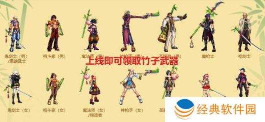 【2、竹子武器】。竹子武器装扮,每个职业设计不同,萝卜青菜各有所爱,个别职业挺好看的,比如暗夜使者、魔法师、圣职者等等。