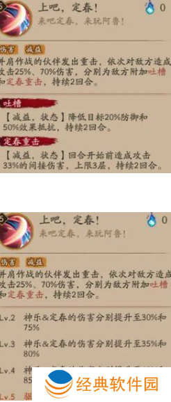 此外,如果目标带有定春重伤,也就是普攻的毒伤的话,该目标受到单体攻击会提高神乐的5%行动条。