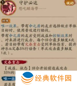 同时拥有伞之盾的友方受到减益和控制的时候,会反击敌方,每个回合最多触发4次,迦楼罗看了都要流泪,怎么你和银时都会这种条件反击。