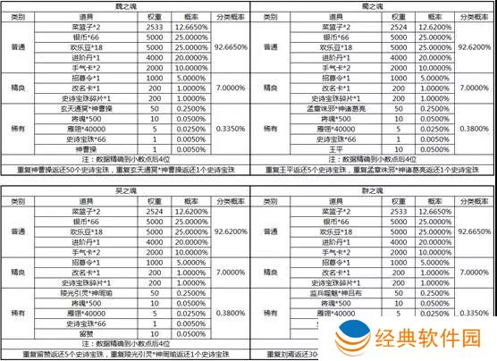 魏之魂、蜀之魂、吴之魂、群之魂概率公示: