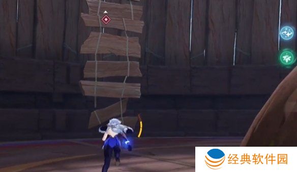 36、根据指引,从木梯往上爬,上来后往前走,飞去对面。
