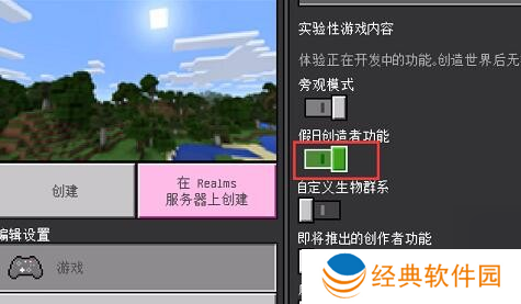 4、在【实验性游戏内容】区域下方,将所有选项激活,包括但不限于旁观模式、节日创作者工具、自定义生物群系、创作者功能以及测试框架等。