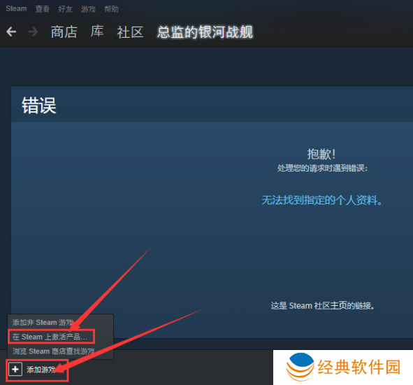 3.如果是steam平台的激活码,首先打开steam平台,然后点击左下角的添加游戏选项,再点击“在steam上激活产品”