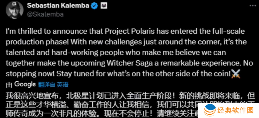 他表示,他很高兴宣布《Project Polaris》已经进入全面制作阶段。新的挑战就在眼前,正是这些充满才华且努力工作的人们,让他相信他们可以一起让即将推出的《巫师》传奇成为非凡的体验,现在不能停下,请大家期待硬币另一面的内容。
