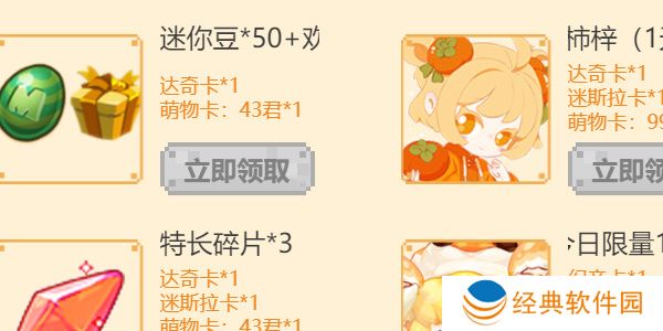 卡片兑换:每日进入页面可概率抽取卡片,使用卡片可兑换相应礼包,其中: