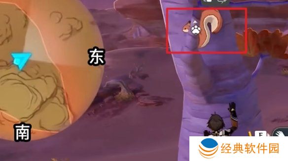 6、打完招呼后,转向西南方向,利用红色方框处的东西往上走。