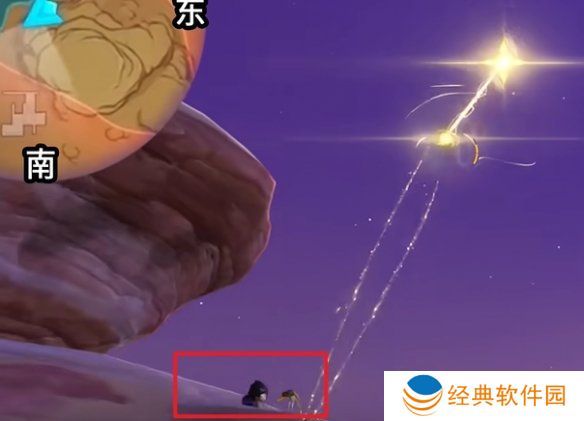 2、开始挑战后,往西北方向飞,去前放的石头上面。