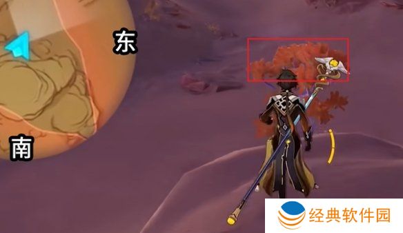 4、打完招呼后,往东北方向走,看到一颗树。