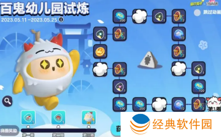 1、蛋仔们可以参与百鬼幼儿园试炼,完成任务获取骰子,并走出对应步数,即可获得对应位置的奖励;