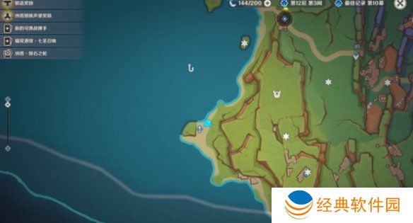 1、首先前往下方图中的位置,然后往镜壁山下方西南的海滩处走。