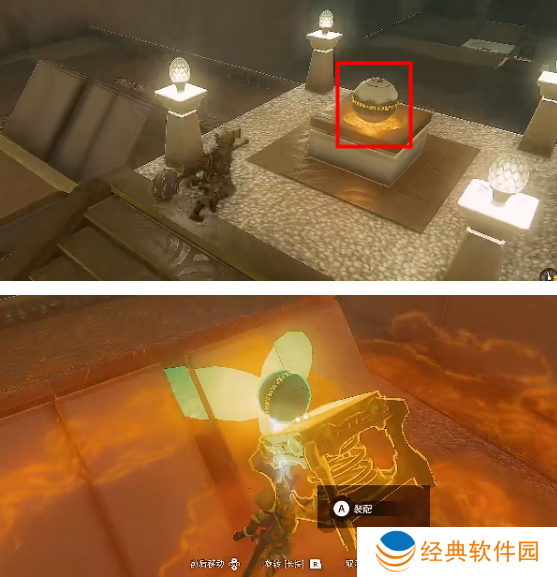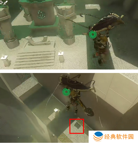 1、进入摩罗恩克神庙后我们来到下图物体位置,等待他下落的时候站上去。