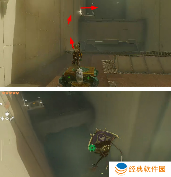 4、来到新平台后还可以发现一个弹簧,操作也是一样的攻击弹簧沿着箭头的方向移动到对面的平台。