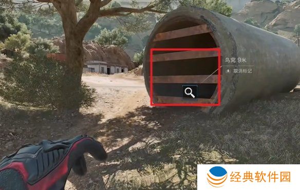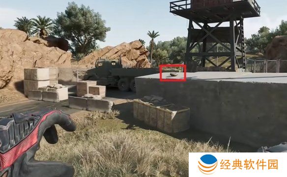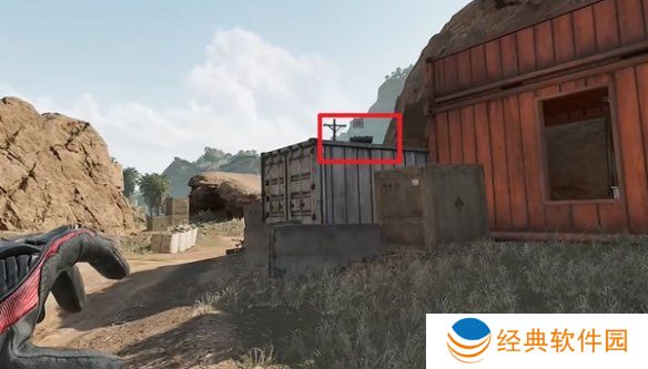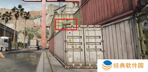 9、图中位置利用滑索下去,即可在木箱上看到。