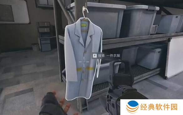 5、东楼内:在设备领用室中,搜索架子上的衣服,可以看到酒店王子房卡。
