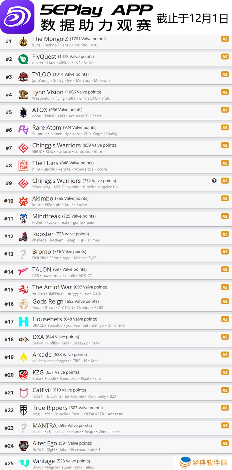 今天V社更新了旗下CS世界排名,这一世界排名会和明年的赛事邀请紧密联系,因此是主办方和战队都必须关注的内容。