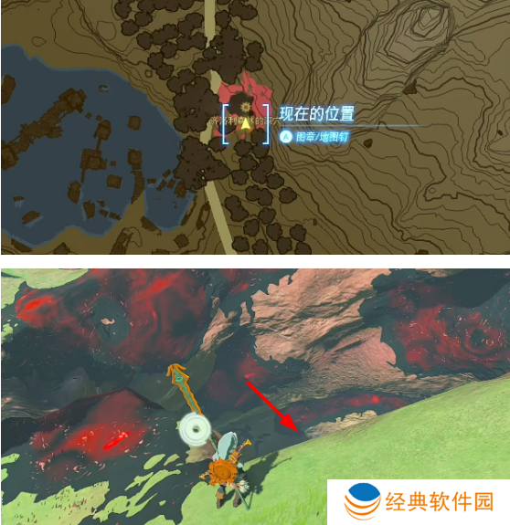 2、来到底部进入齐洛利树海区域,我们朝着下图的方向移动。