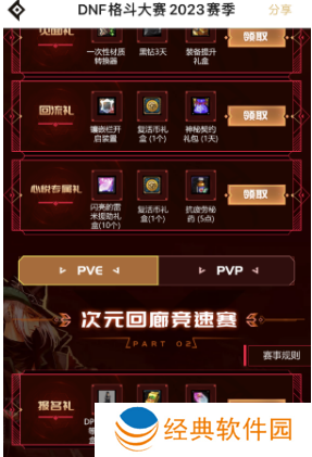 ②如果找不到搜索DNF格斗大赛也可以,进入活动界面之后往下拉,玩家可以看到有很多的奖励可以领取;