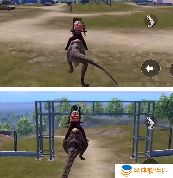 2、靠近悬崖边上,我们直接驾驶着迅猛龙跳跃下去,等待迅猛龙的落地,我们在查看这个结果。