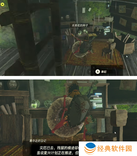 2、进去后这里是有一个小屋子,那么玩家是可以在这里找到塞尔达的日记,玩家们是可以从中知道新的英杰服位置是在哪。