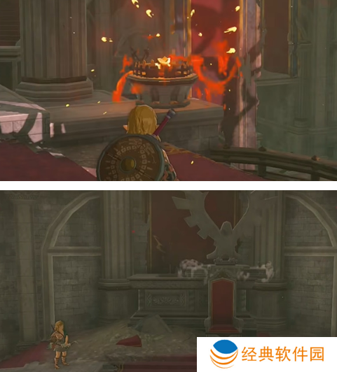 5、将这个2个火堆给点燃起来,因为这里点燃了,机关才可以运转,然后将下方的宝箱给露出来。