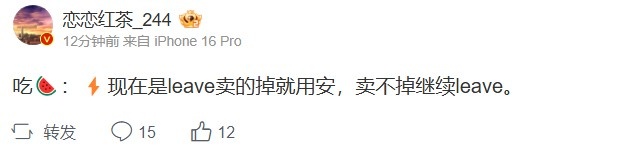 “吃:⚡️现在是leave卖的掉就用安,卖不掉继续leave。”