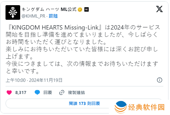 由 SQUARE ENIX 开发的《王国之心》系列新作手机游戏《王国之心 失落连结(暂译,キングダム ハーツ ミッシングリンク,KINGDOM HEARTS Missing-Link)》,官方稍早于 X 宣布游戏将延期推出的消息。