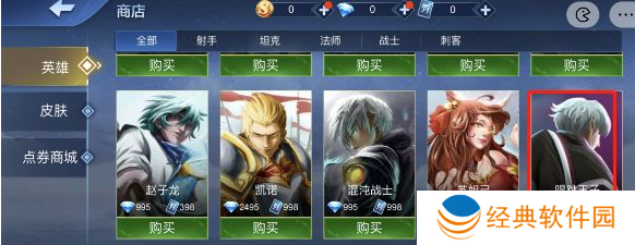 2.第二步:在英雄一览里面就可以找到【唱跳王子】也就是蔡徐坤的皮肤,点击进入就可以购买了;