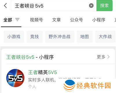 1、进入微信,在微信的搜索框内搜索【王者精英5v5】,进入小程序体验就可以了。