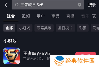 1、在抖音里面搜索【王者峡谷5v5】,即可看到小程序,进入即可体验;