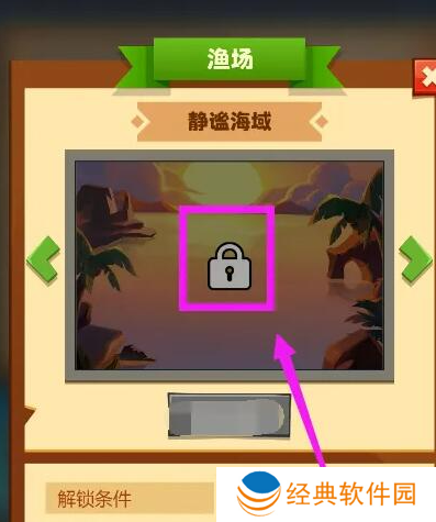 3、然后在这里的界面当中解锁静谧海域就能够进行钓鱼了。
