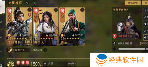 以赵云为核心的连击阵容,有很高的爆发力,以超高的伤害终结战斗,在前期无论是PVP还是PVE都是非常好用的,可以帮助玩家快速发育。该阵容包含了龙胆神将(解锁手册获得)、虞夫人(免费送)、武圣(首充获得),获取方式都比较简单,对于平民小氪玩家来说是一个不错的选择。在兵种选择上使用骑士,这三个英雄都是具有骑士羁绊的,其中龙胆神将主力输出,虞夫人在三号位给他们两个加状态。