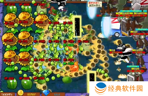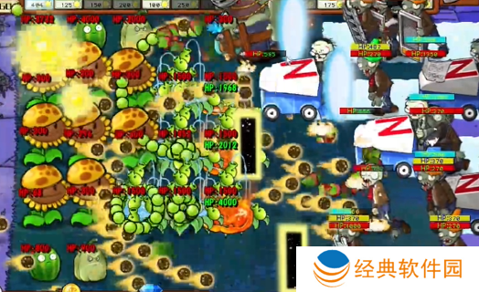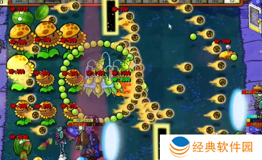 7、最后在中间区域种植多个豌豆许愿池,同时补充燃烧南瓜头即可轻松过关。