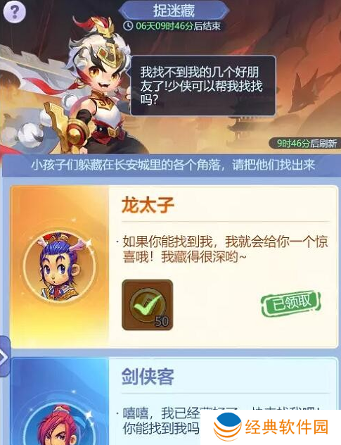 当玩家找到藏起来的小伙伴时,他/她会给出一道考题,回答正确后即可获得游园币奖励。