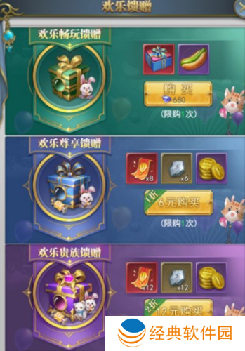 活动期间可在欢乐馈赠中购买多档礼包,助力乐园追放,礼包有购买次数上限。