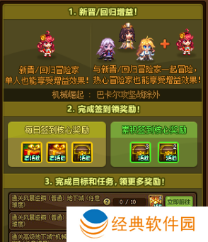 1、回归玩家以及新晋玩家完成任务就可以获取各种道具。