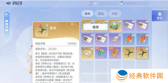 基酒的时效。酿酒任务每天玩三个游戏最后给的是基酒,他的时效只有24小时,过期作废没有任何奖励。所以做完任务就把它使用了,里面会根据三个游戏的总分(基酒的说明上会显示总分)给相应数量的瑞羽,有了初级资格证以后,会给相应的轮次基酒,每3000分给1个轮次基酒,最多8个,也就是24000分。轮次基酒是没有时效的,永远不会过期。