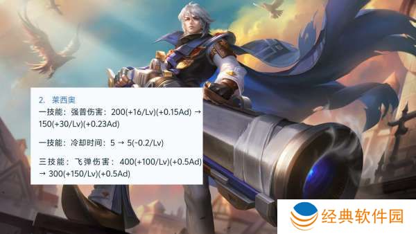 加上一技能的冷却时间也有降低,满级降低了一秒,大招的伤害也有了提升,所以综合来说莱西奥的调整也是增强。这个英雄的增强也在情理之中,毕竟发育路都快要查无此人了。