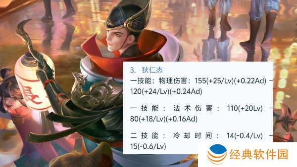 再来看狄仁杰的调整,官方对于狄仁杰的调整就是削弱1技能的基础伤害,但是增加一技能的AD加成。
