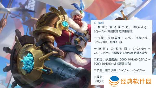 再就是大招的炮击次数,原来提升一级增加一次,改为了提升一级增加两次,满级大招就可以用9次,大大提高了黄忠的强度。虽然黄忠大招的伤害有所降低,但是综合来说,这次调整对于黄忠来说也是一次大幅度的增强。