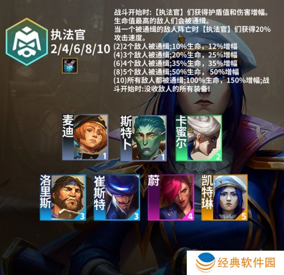 战斗开始时:【执法官】们获得护盾值和伤害增幅。生命值最高的敌人们会被通缉。