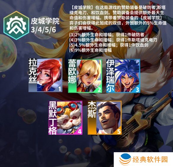 携带着赞助装备的【皮城学院弈子们会获得此加成的双倍,外加额外的5%生命值和伤害增幅。