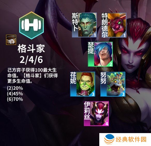 己方弈子获得100最大生命值。【格斗家】们获得更多生命值。