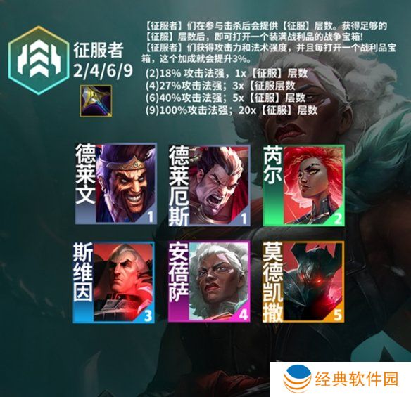 【征服者】们获得攻击力和法术强度,并且每打开一个战利品宝箱,这个加成就会提升3%。