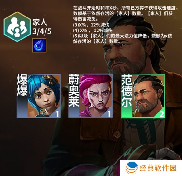 在战斗开始时和每X秒,所有己方弈子获得攻击速度数额基于依然存活的【家人】数量。