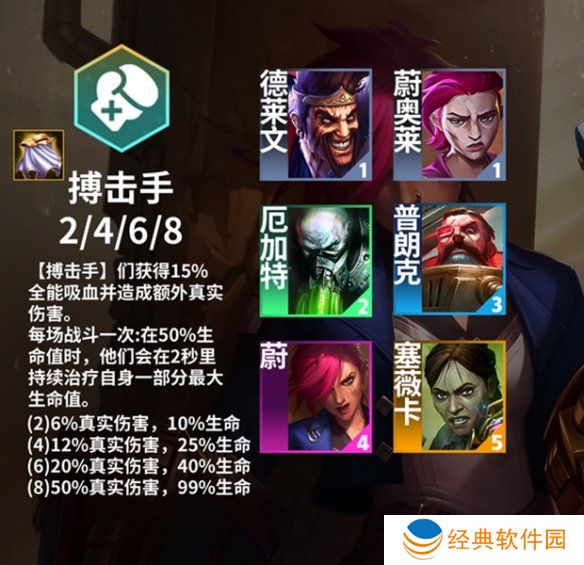 【搏击手】们获得15%全能吸血并造成额外真实伤害。
