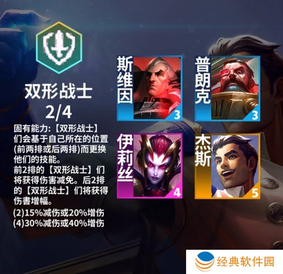 前2排的【双形战士】们将获得伤害减免。后2排的【双形战士】们将获得伤書增幅。