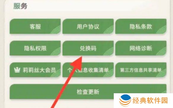 4、最后点击【兑换码】,并将获得的兑换码填写至输入框就能领取对应的奖励。
