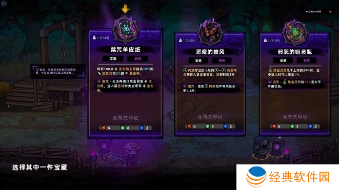 玩家还可以前往哥布林商人处购买全新的皮肤装扮和特别的增益道具,给每一局游戏带来不一样的全新体验。同时,在局内游戏中,还新增了不一样的诅咒机制,大家可以寻找诅咒宝藏。这是一种全新类型的宝藏 —— 给玩家带来诅咒效果 —— 但可以换取特别奖励。