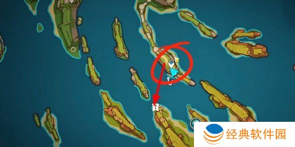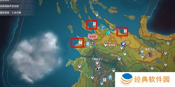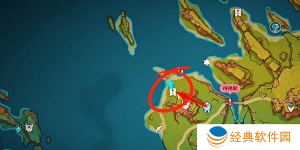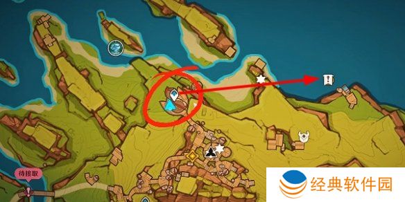2、先传送至奥奇卡纳塔下方位置,然后往这个感叹号的位置过去就可以了。