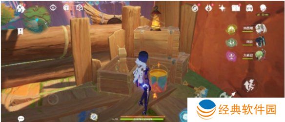 6、打开笼子后,跟着小龙走到图中位置,会钻进去撞开宝箱。